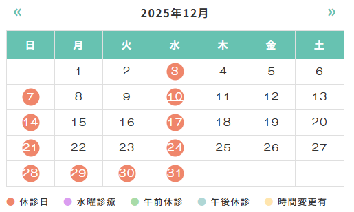 いつも当院をご利用いただき、ありがとうございます。年末年始は、下記の日程で休診させていただきます。